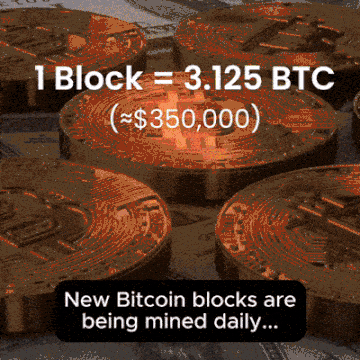 Bitcoin-nettverket gir ut en ny blokk-belønning (for tiden 3,125 BTC) omtrent hvert 10. minutt. For å vinne må en miner gjette riktig løsning på et kryptografisk puslespill.
